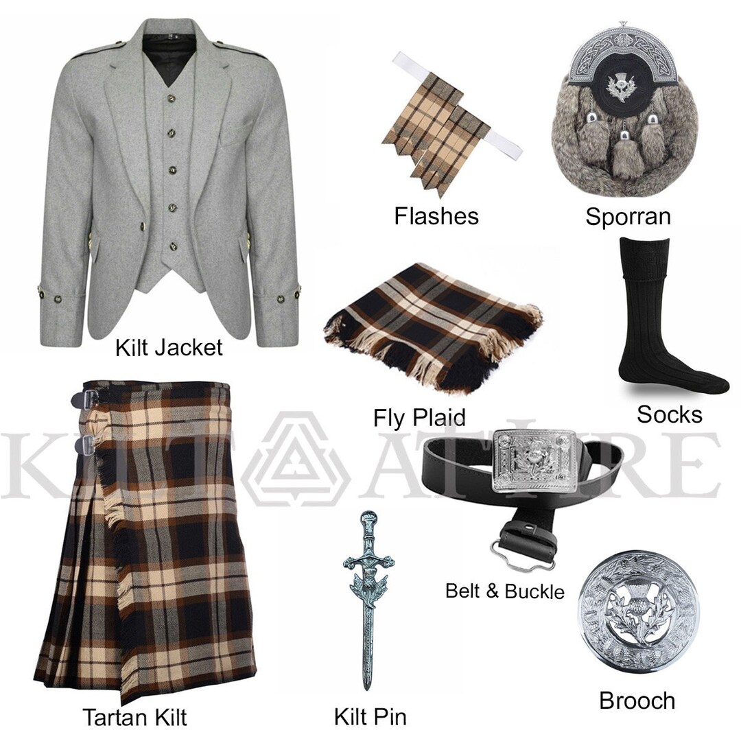 Men S Wedding Kilt Light Grey Jacket Complete Outfit With Etsy